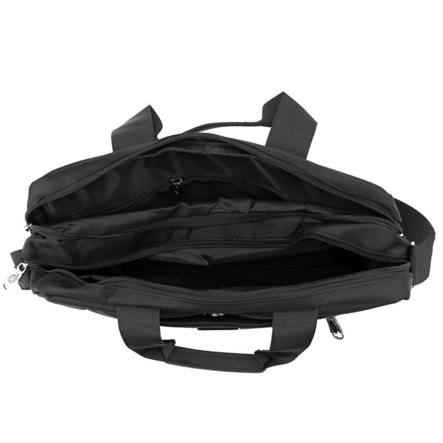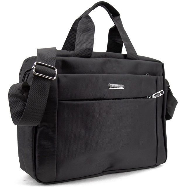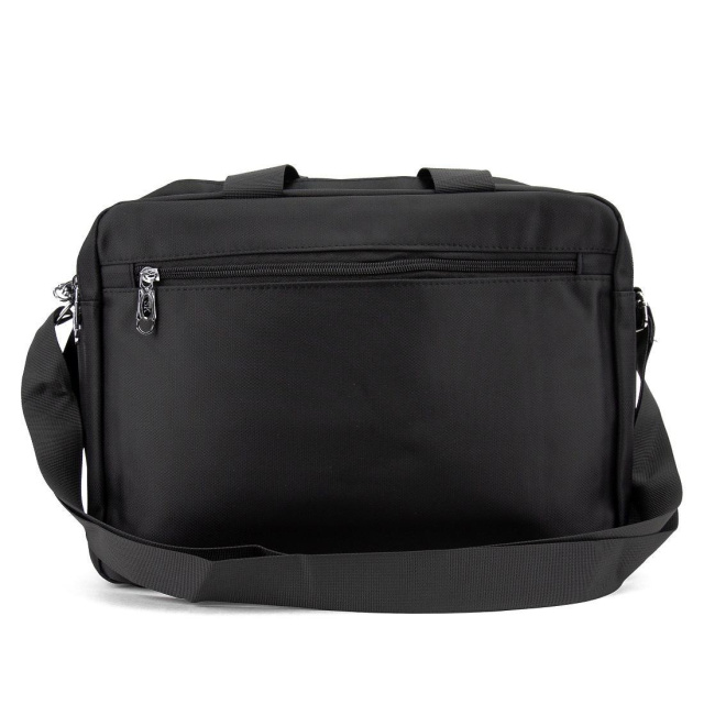Чоловіча тканинна сумка для ноутбука виготовлена з текстилю чорного кольору.