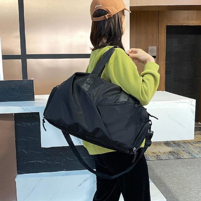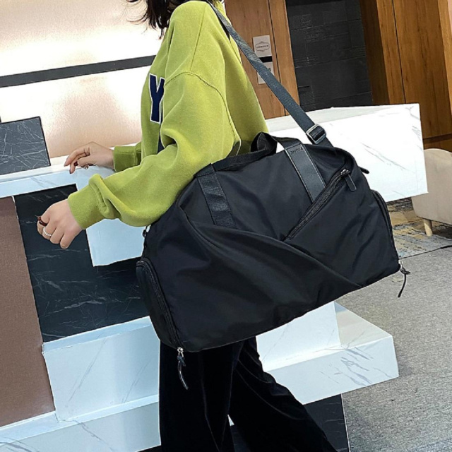 З торця є відділ для взуття, завдяки чому сумка відмінно підходить для тренувань.