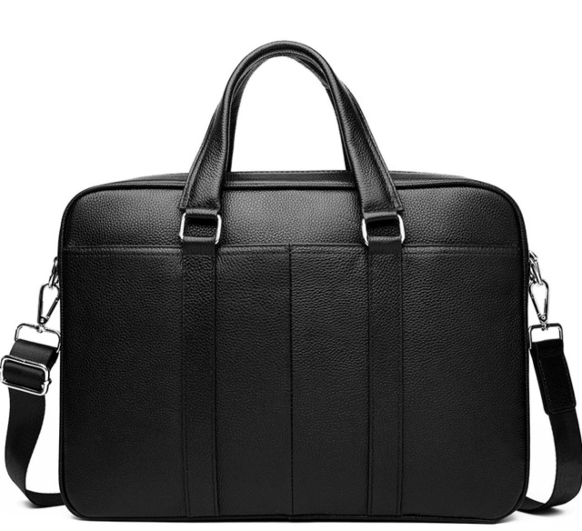 Класична, стильна сумка для ноутбука 79904A виготовлена з натуральної шкіри чорного кольору і має матову, зернисту текстуру.