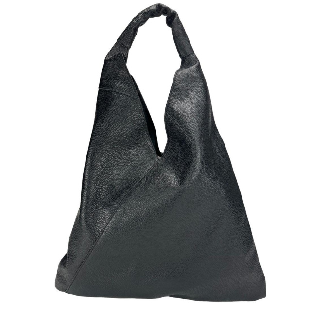 Сумка-шопер чорна Італія 77625A пошита з натуральної шкіри.