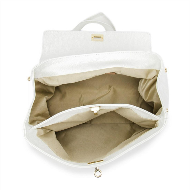 Має два відділення, закривається на механічну застібку.