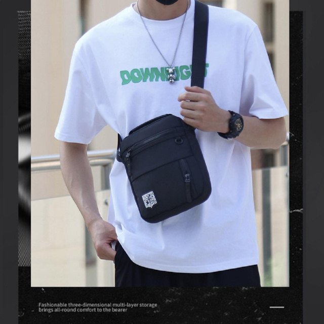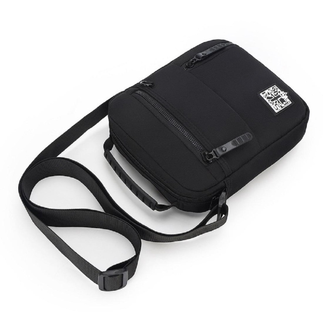 Чоловіча сумка через плече 722919A пошита із міцного текстилю у чорному кольорі.