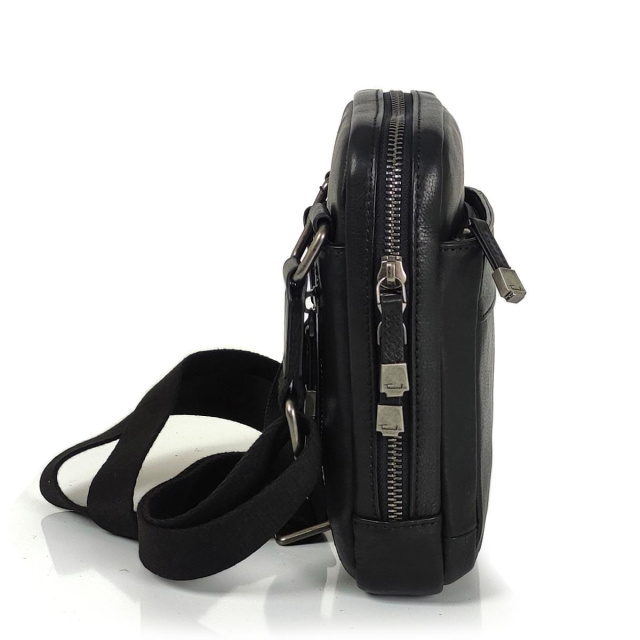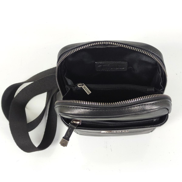 Чоловічий месенджер через плече 7S001A виконаний з гладкої шкіри чорного кольору. Розміри становлять 16 х 21 х 5 см. Особливості: має одне відділення на блискавці.
