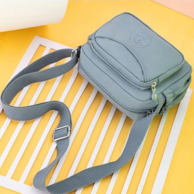 Компактне блакитне крос-боді з водовідштовхувальної тканини це практична повсякденна модель для міста.