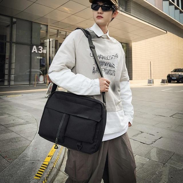Чоловіча сумка через плече 7225A пошита із міцного текстилю у чорному кольорі.