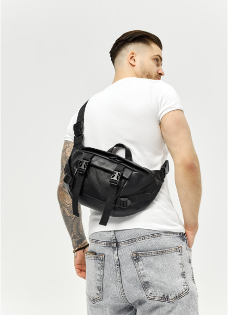 Велика чорна чоловіча поясна сумка