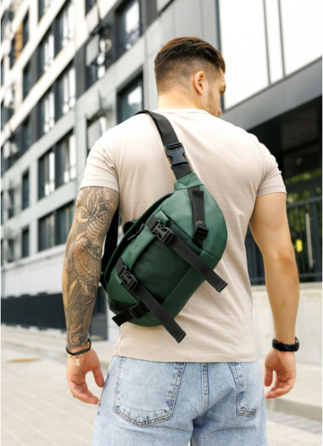 Велика чоловіча поясна сумка бананка зелена шкіра еко, Київ