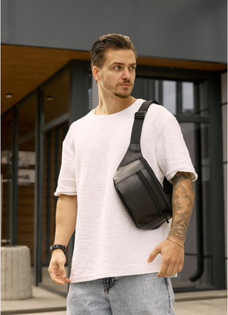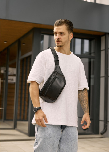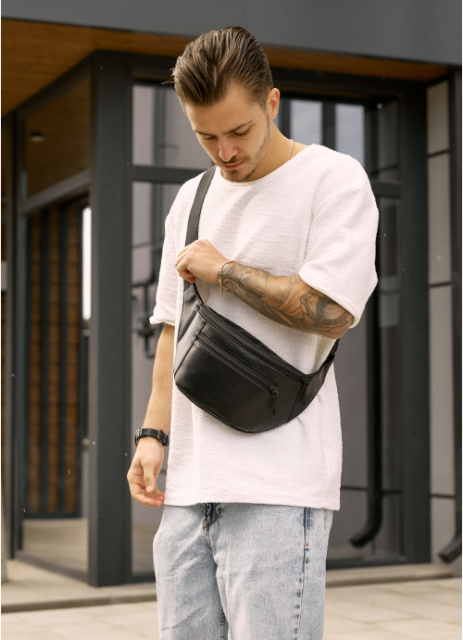 Шкіряна сумка бананка на пояс чорна, Київ