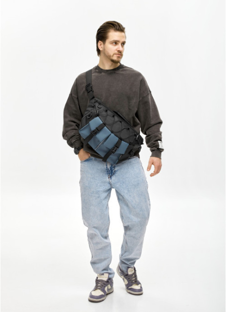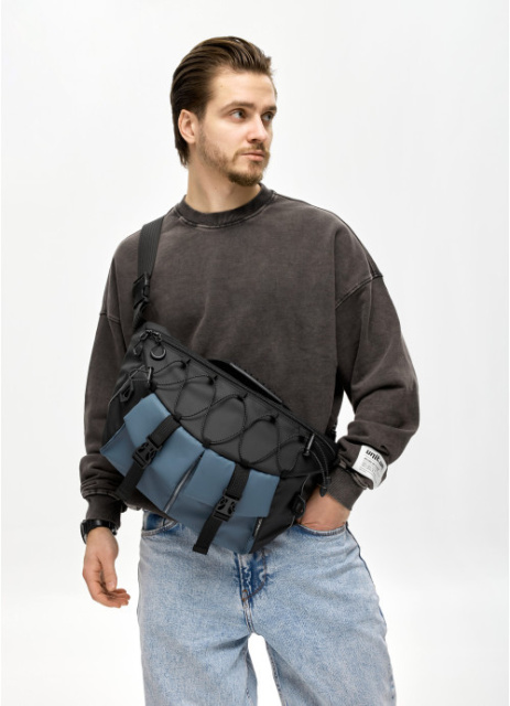 Сумка бананка велика для ноутбука 13 чорно-синя, Київ