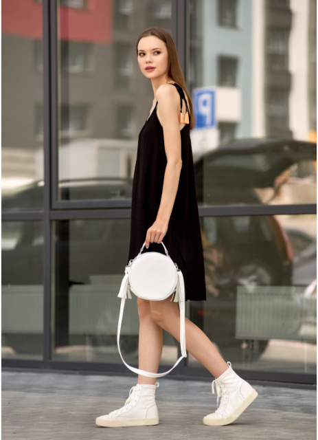 Кругла сумочка завдяки трендовій формі та базовому кольору точно стане головним акцентом в твоєму образі.