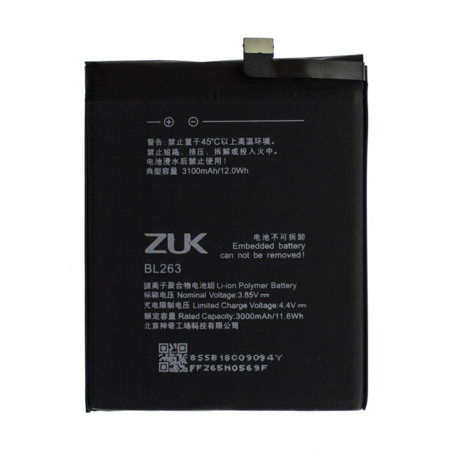 Аккумуляторная батарея для Lenovo BL263 / Zuk Z2 Pro AAA-Class высокого качества, имеющая ёмкость 3000 mAh. Технические параметры этого аккумулятора