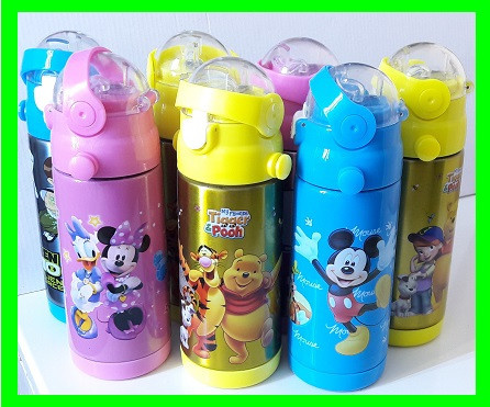Термос из пищевой нержавейки на 350мл. Оборудован трубочкой поилкой с защитной крышкой и фиксатором с предохранителем. Так же в комплект входит...