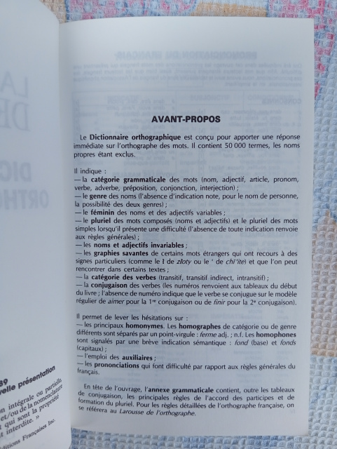 Une réponse immédiate à toute question sur l'orthographe de 50 000 mots. - Catégorie grammaticale de tous les mots. - Féminin et pluriel des mots variables. - Pluriel des mots composés. - Catégorie des verbes (transitif, intransitif, etc.). - Emploi particulier de l'auxiliaire être. - Distinction des homonymes. - Prononciations difficiles. En annexe : - Les conjugaisons. - Les règles d'accord du participe. - Les règles de formation du pluriel.