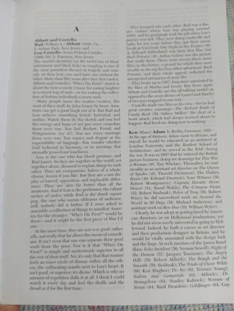 In all, the book includes more than 1300 entries, some of them just a pungent paragraph, some of them several thousand words long. In addition to the new “musts,” Thomson has added key figures from film history–lively anatomies of Graham Greene, Eddie Cantor, Pauline Kael, Abbott and Costello, Noël Coward, Hoagy Carmichael, Dorothy Gish, Rin Tin Tin, and more.