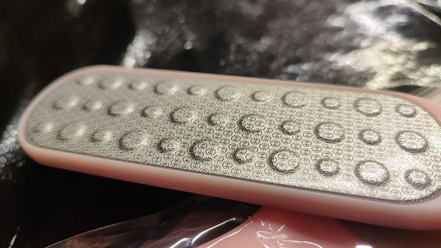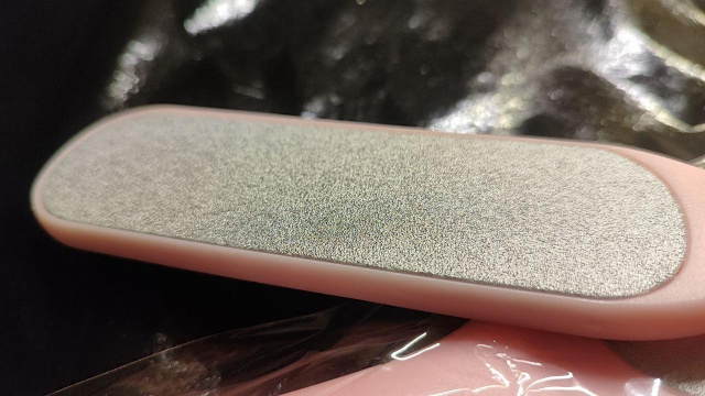 С другой стороны - полировальная поверхность, которая придает стопам гладкий вид после первого этапа процедуры.