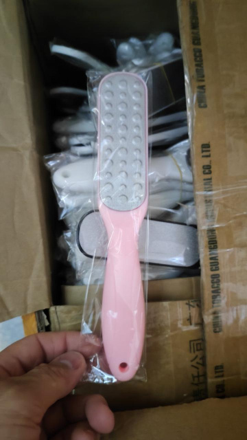 С одной стороны терка имеет немного выпуклую форму, она предназначена для уборки загрубевшей поверхности стоп.