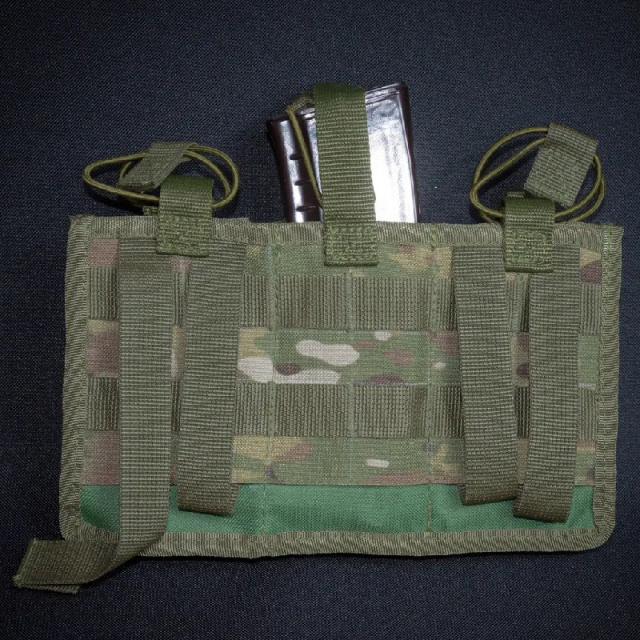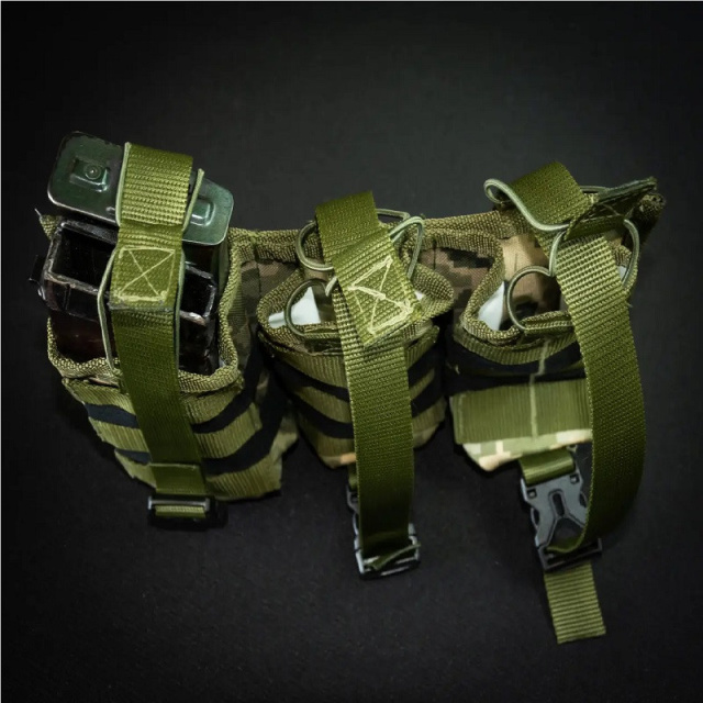 В этомподсумке можно надежно зафиксировать шесть рожков, которые не будут выпадать ни при каких обстоятельствах. Для фиксации результатов используется система крепления MOLLE по стандартам НАТО. На передней части итога также присутствуют крепежи, которые позволят закрепить необходимые аксессуары (карабин, фонарик и прочее).
