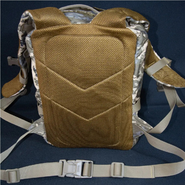 В нем очень грамотно расположены все отделы и карманы, доступ к ним очень прост. Для фиксации итогов используется система креплений MOLLE по стандартам НАТО. На передней части также присутствуют крепежи, которые позволят закрепить необходимые аксессуары (карабин, фонарик и прочее). Широкие лямки равномерно распределяют нагрузку на плечи и спину. Мягкая вертикальная спинка выполняет амортизирующую функцию и обеспечивает циркуляцию воздуха между рюкзаком и вашей спиной. Сетка Мувер 3d и ПЭТ вставка для жесткости по всей спине.