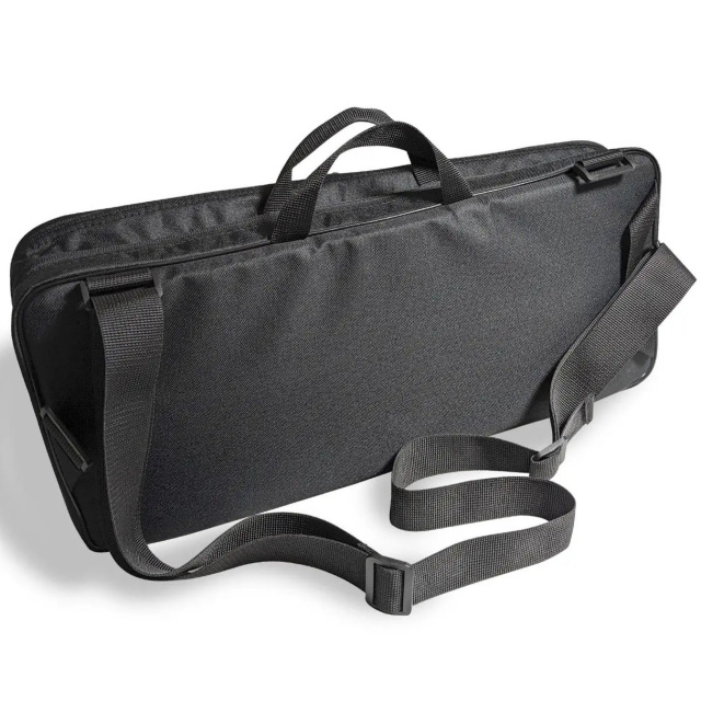 Чехол оснащен регулируемым по длине плечевым ремнем с пластиковыми пряжками, а также дополнительной ручкой сбоку для более удобной переноски.