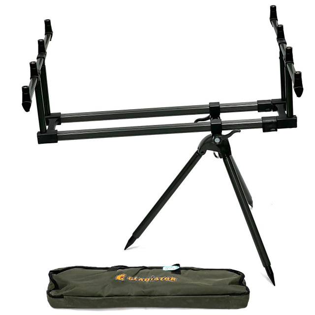 Род-под GLADIATOR 153 — це вдале поєднання компактності, надійності й комфорту, створене для ефективної риболовлі з одночасним використанням до чотирьох вудилищ. Цей універсальний аксесуар відзначається міцною конструкцією, стійкістю на різних типах поверхні та зручністю транспортування.