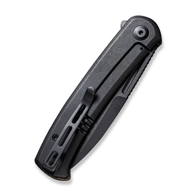 Плашка з мікарти з одного боку мінімізує ковзання ножа у долоні. З іншого боку оголена сталева конструкція руківʼя, доповнена кліпсою Tip-Up. Кліпса закріплена двома гвинтами та не передбачає зміни положення.