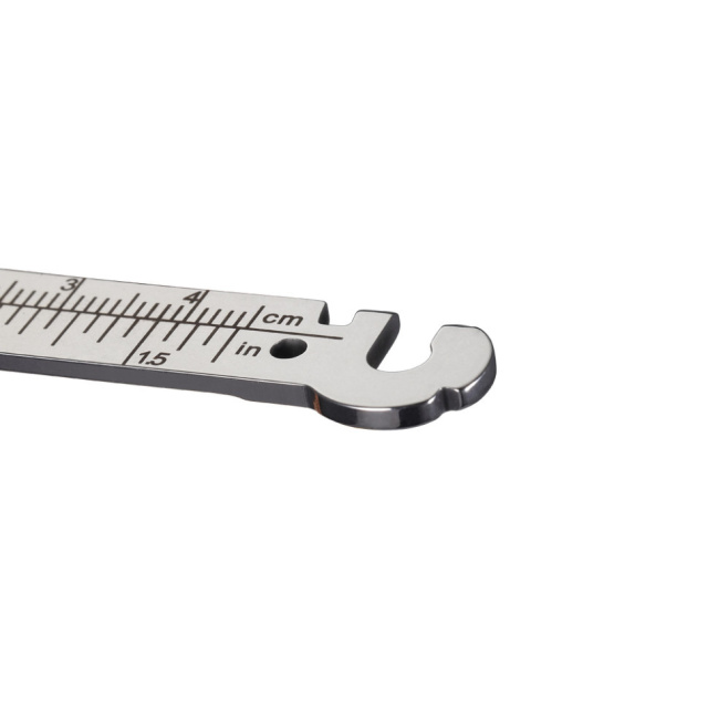 Линейка (сантиметровая и дюймовая), нанесенная на одну из сторон инструмента, для выполнения быстрых измерений, будь то проверка размеров детали, измерение длины или разметка материалов перед резкой.