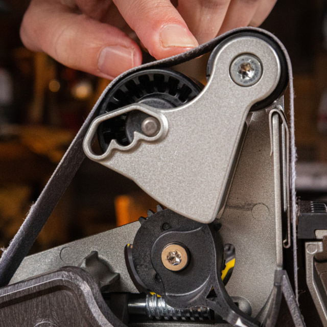 Точильный модуль поставляется в комплекте с 5 абразивными ремнями разной зернистости: P120, X65, X22, X4 и 12000 грит. С их помощью можно поэтапно остричь лезвия, в том числе из высокопрочных марок стали, возвращая им эталонную остроту на уровне заводской заточки.