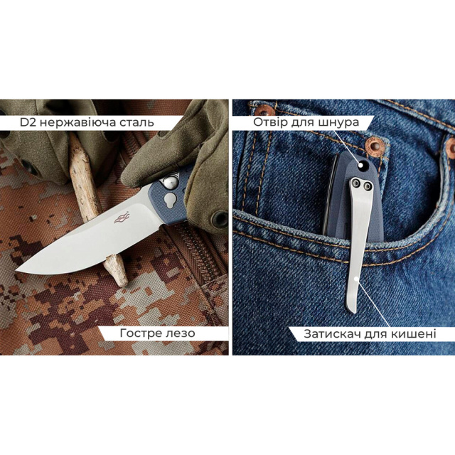 Лаконичный дизайн, разработанный с акцентом в эргономику, — это то, что превращает складной нож Firebird FH926 в универсальный инструмент для выполнения колюче-режущих работ различной сложности. Его клинок с прямым лезвием подходит для ровной резки, а поднятый упор для пальца на обухе облегчает выполнение силовых задач, требующих значительных физических усилий. В результате вы получаете максимальный контроль над инструментом в ситуациях, где требуется высокая точность и сила.