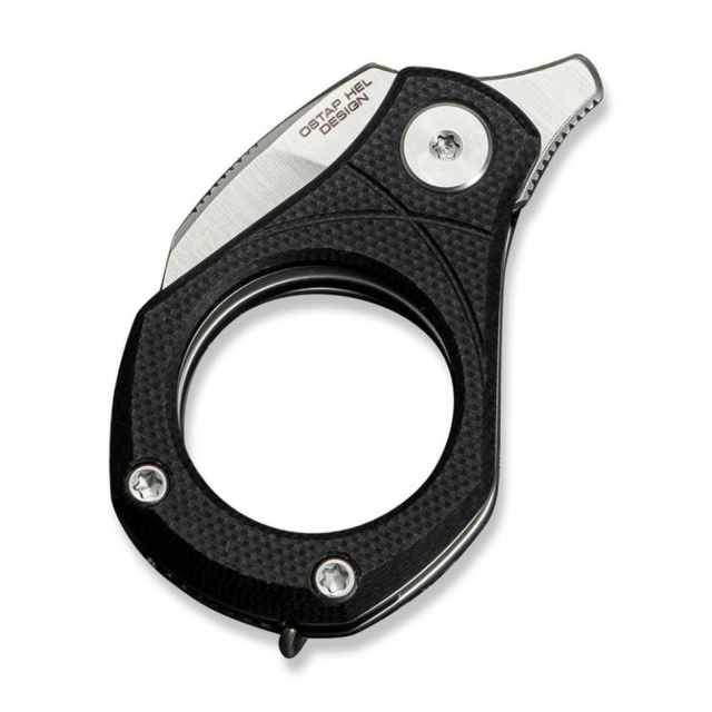 Несмотря на миниатюрные размеры (всего 57,4 мм в закрытом положении), модель не лишена эргономики, за которую отвечают шероховатые накладки с G10 на рукояти. В конструкции также есть клипса на карман, который можно использовать как зажим для денежных купюр или кольцо для ношения ножа в качестве брелока.