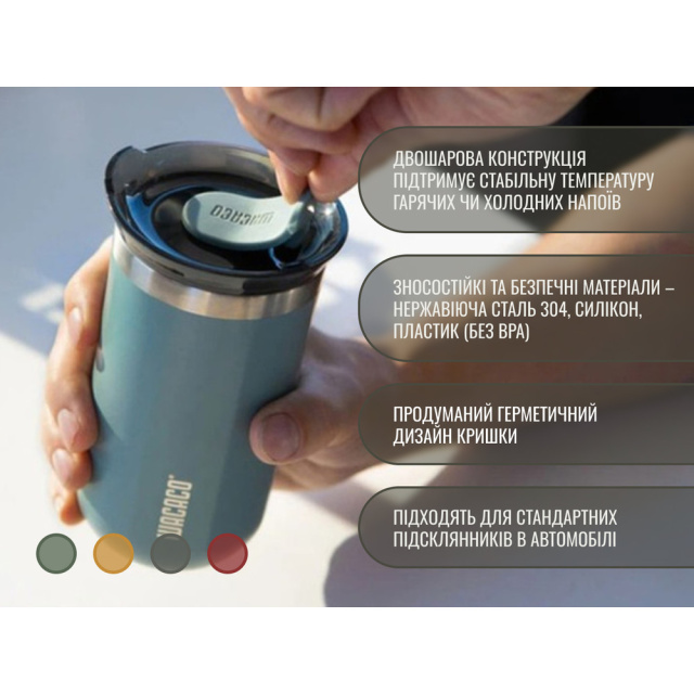 Размеры термокружки складывают Ø81 мм х 150 мм, поэтому он совместим с большинством автомобильных подстаканников. Кроме того, изделие не требует специального ухода – достаточно сполоснуть конструкцию под проточной водой, чтобы очистить ее от остатков напитка.