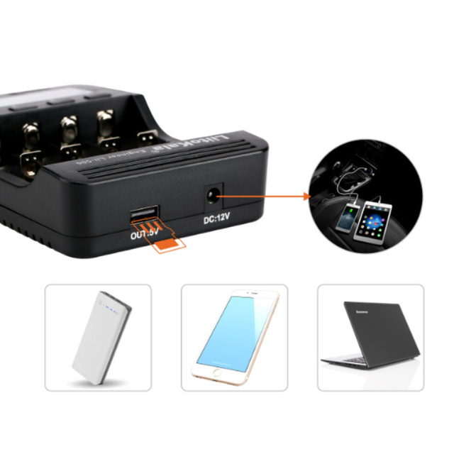 Наличие выхода USB позволяет использовать Lii-500 как Power Bank (5 В / 1000 мА). В комплекте есть адаптер для подключения к автомобильному прикуривателю, что делает зарядное устройство особенно полезным в дороге или на природе.