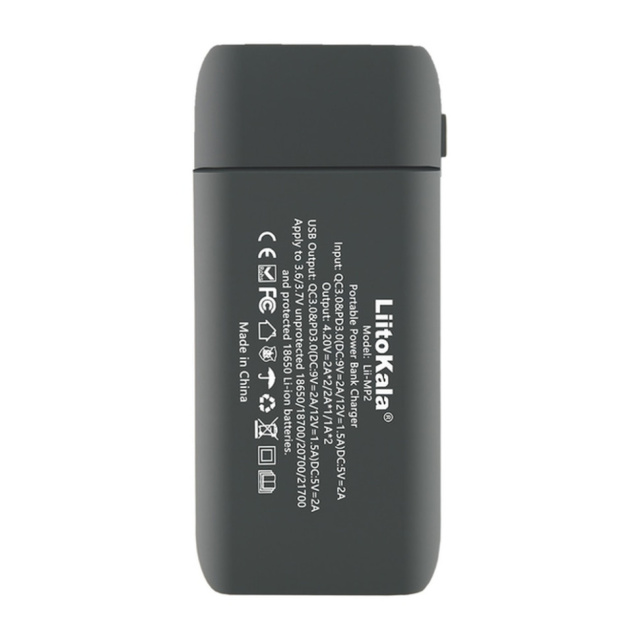 LiitoKala Lii-MP2 — это зарядное устройство с расширенным функционалом 2 в 1. Его можно использовать не только для зарядки аккумуляторов, но и как Power Bank для заполнения заряда в посторонних гаджетах. LiitoKala Lii-MP2 не имеет встроенного аккумулятора, поэтому без установленных аккумуляторов он не работает как power bank. Lii-MP2 работает только как промежуточная станция: или заряжает аккумуляторы, или через них питает гаджеты. Одновременно заряжать аккумуляторы и гаджеты нельзя.