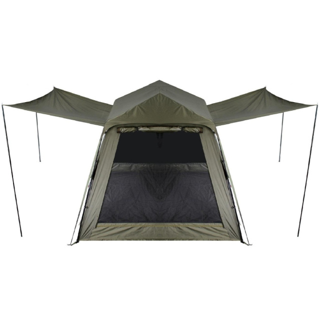 Каркас намету посилений додатковими боковими розпорками та додатковими стійками, що значно підвищує його стійкість та витривалість у складних погодних умовах. Така конструкція дозволяє шатру витримувати пориви вітру та зберігати форму навіть під сильним навантаженням. Для максимальної стійкості до поривів вітру є додаткові розтяжки. До того ж намет укомплектовано міцними штормовими кілочками, які вгвинчуються в ґрунт. Для зручності зберігання дрібних речей у комплекті передбачено 4 сітчасті кишені, які за потреби легко кріпляться в кутах намету. Для запобігання збирання конденсату, в горі розміщується додаткова стеля, що фіксується на гумових фіксаторах.