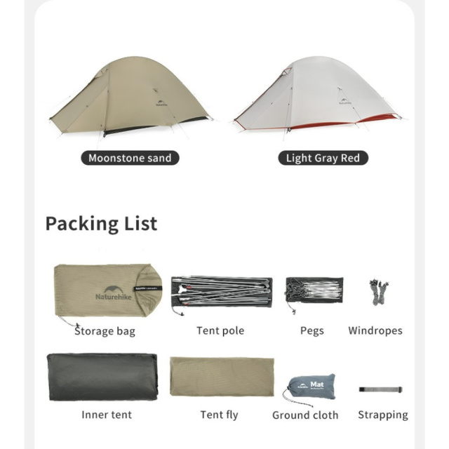 Описание палатки сверхлегкого двухместного Naturehike Cloud Up Pro CNK2350WS020, 20D, песочного: