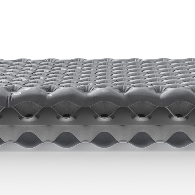 Матрас имеет овальную форму для равномерного распределения веса. Этому также способствуют рельефная поверхность и множественные мелкие камеры, которые при наполнении воздухом обеспечивают хорошую поддержку тела и полное расслабление мышц.
