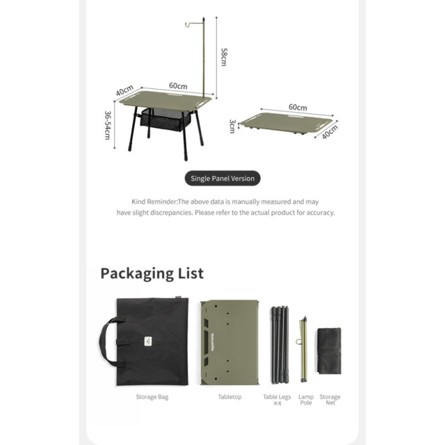 Стол Naturehike CNK2450JJ025 имеет складную конструкцию со столешницей 60 х 40 см. Его можно использовать для обустройства места для приготовления и приема пищи на свежем воздухе или в качестве кофейного столика для организации зоны отдыха.