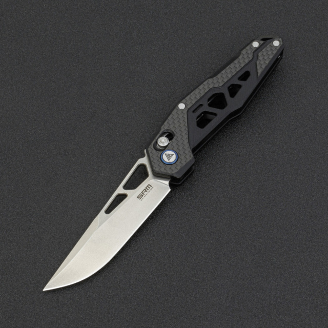 В карманном ноже SRM 9225-KB акцент сделан на минимальный вес и быструю управляемость. Скелетизованная конструкция со множеством больших отверстий в клинке и рукояти весит всего 82 г и смещает баланс ближе к руке, благодаря чему лезвие легче открывается и лучше контролируется во время работы.