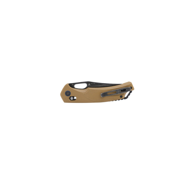 Рукоятка — G10. Формованные плашки из многослойного композита устойчивы к влаге, химии и перепадам температуры. Шершавая текстура обеспечивает уверенный хват в перчатках и влажных условиях, а фаски на кромках снижают точечные нагрузки и усталость запястья при длительной работе.
