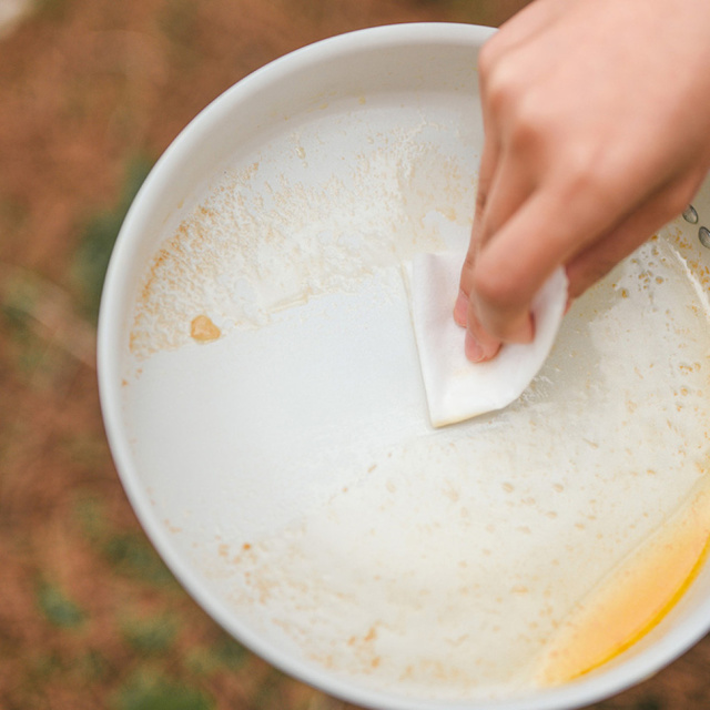 Посуда имеет антипригарное покрытие из керамики, которое облегчает готовку на природе и очистку от остатков пищи.