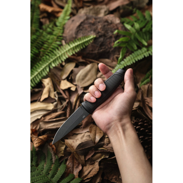 Классический профиль Drop Point с прямой заточкой обеспечивает контролируемый рез. Кончик немного заужен, что позволяет работать на прокалывание без ущерба для прочности.
