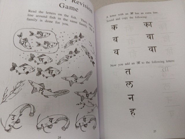 Сначала учащихся учат рисовать буквы. Учению также способствует юмористическое представление букв в виде фигурок животных. Следующий шаг — добавление гласных к согласным, а затем обучение составным согласным. Наконец, формируются слова и предложения.