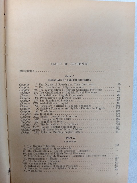This normative (practical) course in English phonetics is meant chiefy for students at Pedagogical Institutes and Faculties of Foregein Languages, who are training to become teachers of English in Soviet schools. The object of this book is to provide these students with teoretical and practical material which will help them to master English pronunciation themselves and to learn how to teach it to others. The book consists of three parts: Essentials of English Phonetics, Phonetic Expercises and Phonetic Reader.