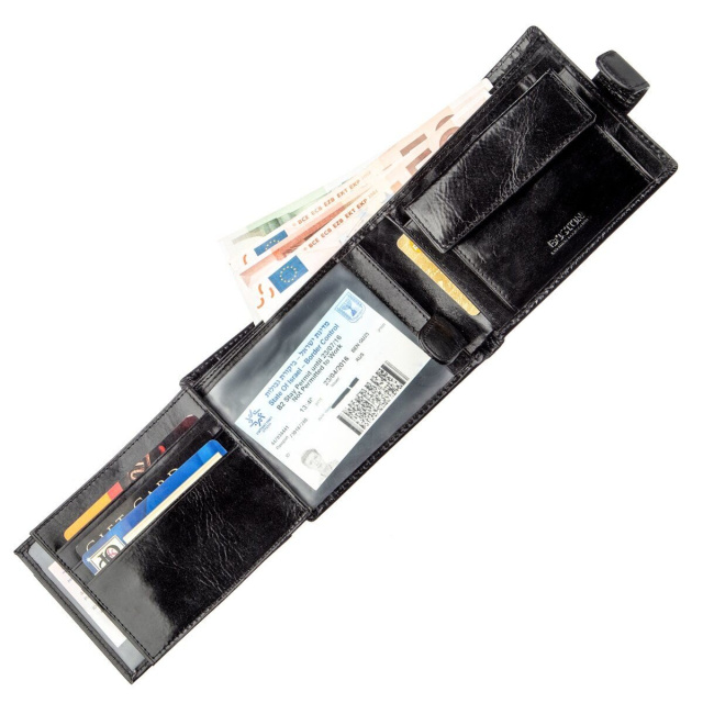 Классический мужской бумажник из высококачественной кожи черного цвета. Имеет много необходимых отделений для ваших карт, документов и конечно же денег. Также данное изделие может похвастаться оптимальным размеров и элегантным не вызывающим дизайном, который подойдет для мужчин различного возраста и социального положения. Иметь такой кошелек, захочет каждый, поэтому спешите купить данный бумажник себе или на подарок. Упаковано данное изделие в прочную картонную коробку белого цвета.