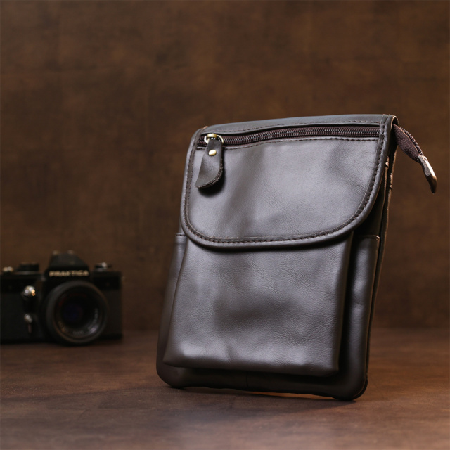 Кожаная компактная мужская сумка через плечо Vintage 20468 Коричневый, Київ