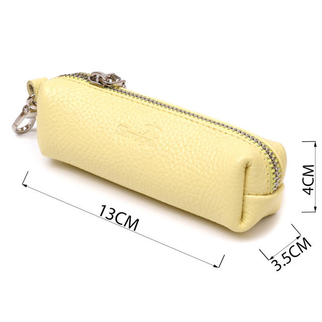 Красивая стильная ключница в интересном лимонном цвете, смотрится очень свежо и необычно. Материал изготовления – качественная кожа с улучшенными показателями стойкости к износу. Имеет зернистую мягкую фактуру. Внутри есть металлическое кольцо для крепления ключей, на внешней стороне специальный карабин.