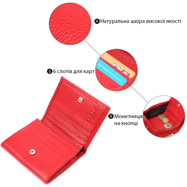 Женский небольшой кошелек с монетницей из натуральной кожи KARYA 21380 Красный, Київ
