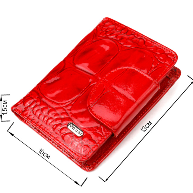 Лакированный вертикальный женский кошелек из натуральной кожи с тиснением под крокодила CANPELLINI 21681 Красный, Київ