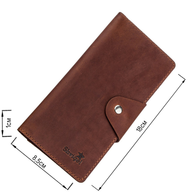 Вертикальный мужской кожаный бумажник с классическим дизайном коричневого цвета. Изделие отличается своей прочностью и шикарным внешним видом. Дополнен бумажник серебристой фурнитурой. Закрывается модель на две кнопки – вы можете самостоятельно регулировать наполненность изделия, закрыв его на ближнюю или дальнюю кнопку. Изделие поместится в ваш портфель или сумку, не имеет тяжелого веса. Прекрасно лежит в руке. На лицевой стороне тисненый логотип бренда. Если вы в поисках подарка – советуем вам данную модель – она доступна в разных цветах и является очень выигрышным решением для подарка близкому человеку.