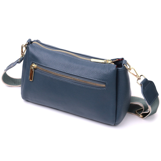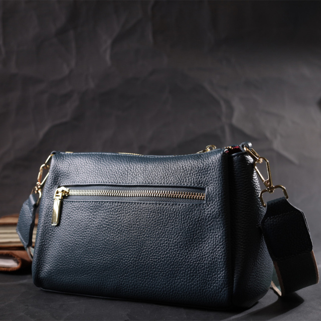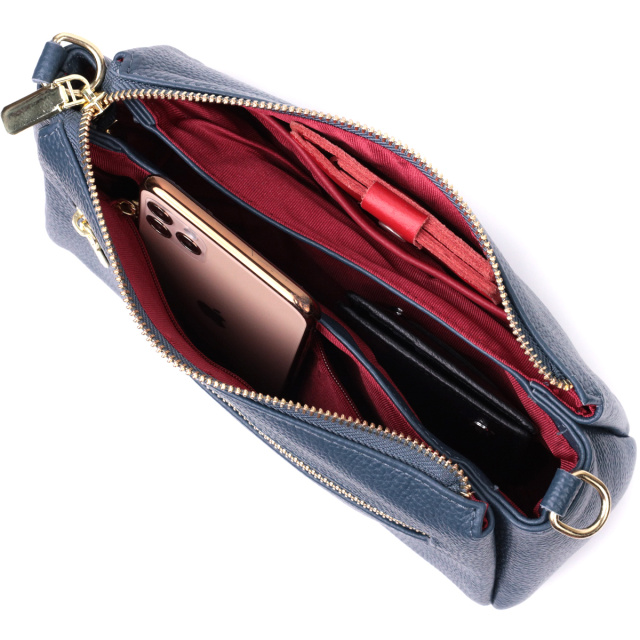 Женская практичная сумка через плече из натуральной кожи Vintage 22287 Синяя, Київ