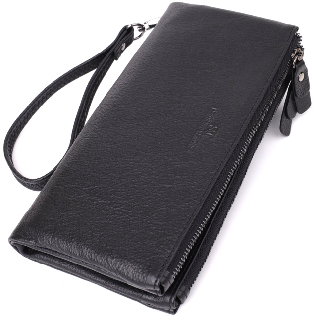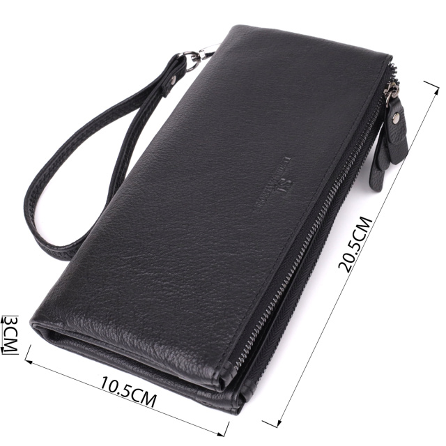 Универсальный кошелек-клатч который отличается своей вместительностью. В данную модель легко поместится ваш смартфон. Таким образом модель способна заменить вечернюю сумочку. Носить же клатч можно с помощью кожаного ремешка на запястье. Два вместительных кармана помогут удобно разложить вам деньги, также клатч имеет достаточно слотов для кредиток. Преимуществом данного цвета является то, что он не привязывает вас к определенной цветовой палитре в гардеробе. Он подходит под все. Сам клатч мягкий и приятный на ощупь. На лицевой стороне по центру — тисненый логотип производителя, являющийся знаком качества и оригинальности изделия. Внутри клатч сделан из натуральной кожи и плотного текстиля. В комплекте идет фирменная коробка с логотипом бренда. Кожаный клатч станет лучшим подарком для близкого человека.